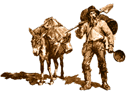 When miners first made the trek to the "New Diggins" camp, they extracted the gold by panning, or by sluicing, which allowed small teams to wash the gold-bearing gravels and concentrate the flakes and nuggets. Soon more expensive operations moved in, such as hydraulic mining of the gravels in quarries using high-pressure water houses, and the digging of drift mines (horizontal tunnels) and vertical shafts to reach ancient gravels that were buried deep beneath the ground. From the middle 1850s through the 1870s, the placers proved to be extremely rich. For example, one 20-acre placer claim yielded half of the $10 million in gold produced by 1910 from the Coon Hollow district alone; and the Texas Hill and White Rock diggings by 1910 had produced $5 million each (mostly from the Deep Blue Lead Tertiary channel). The photo at the upper left, from an old glass ambrotype (similar to a daguerrotype), shows miners in 1852 using a "long Tom" to sluice gravels at Spanish Flat, a mining camp in El Dorado County just a few miles north of Placerville.